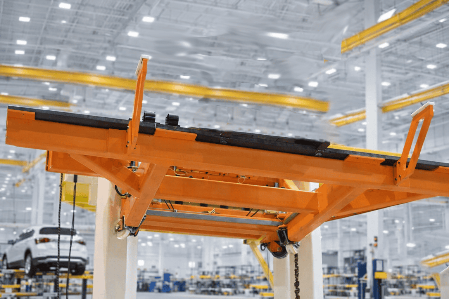 These four custom-engineered belt lifts will be used to transfer chassis and pallets in an automated assembly line for the automotive industry.