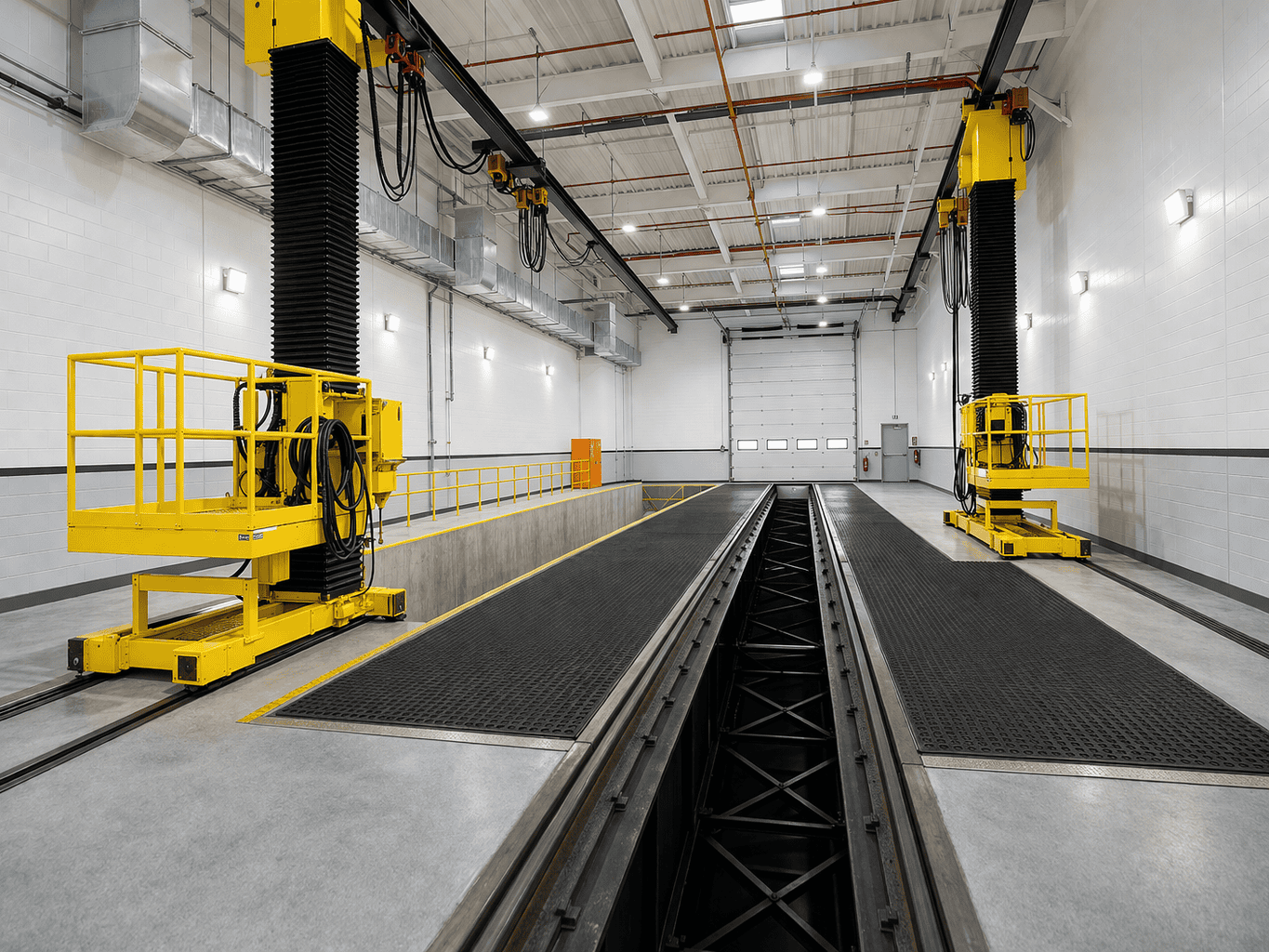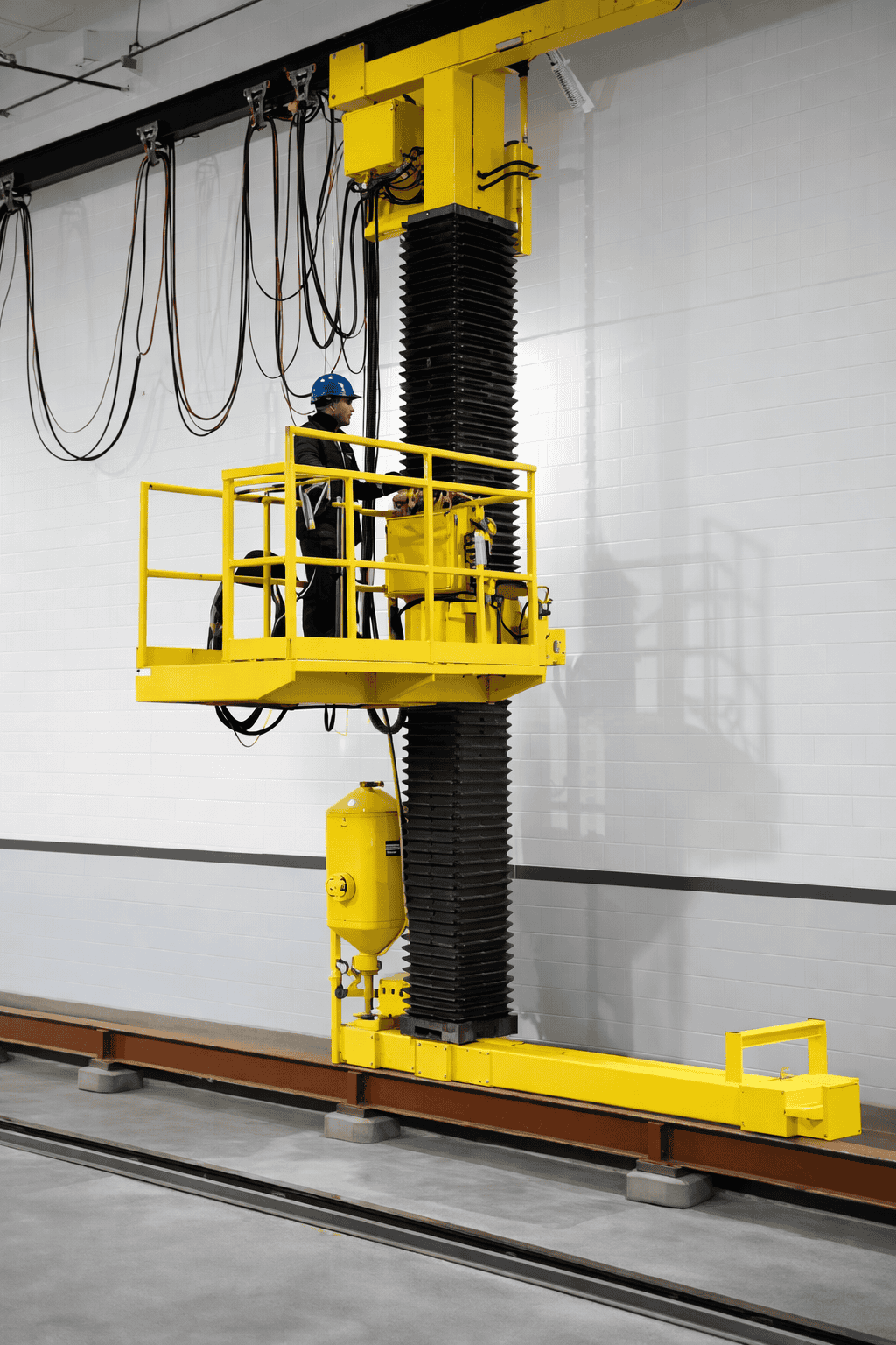 • Self-propelled work platforms run horizontally along crane rail and 120’ track at 80 fpm.