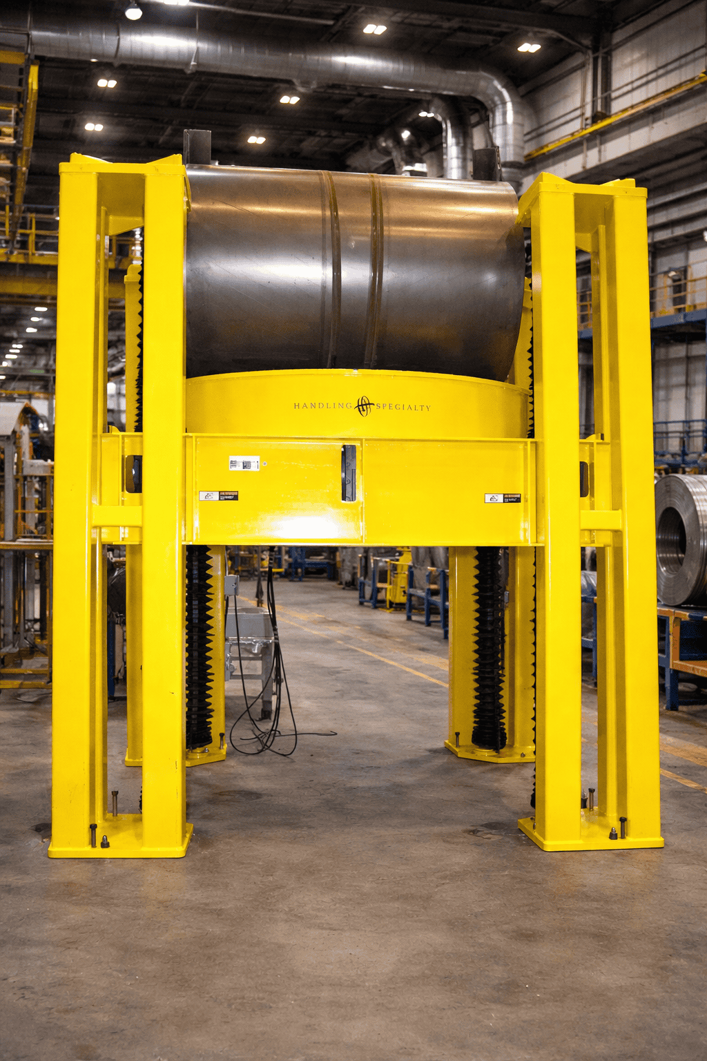 This steel coil handling equipment was designed to handle a uniform load of steel coil, managing 2 Cycles per shift / 2 shifts per day / 1450 cycles per year.