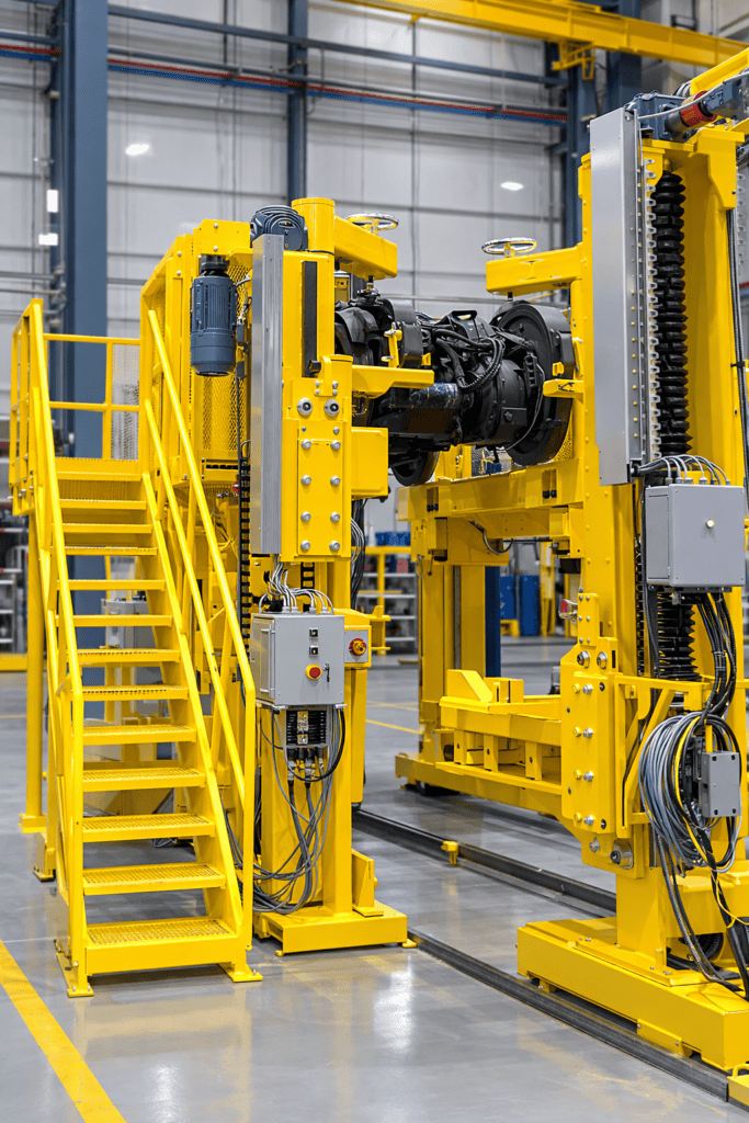 Overview The truck frame stands, and the adaptors are used to lift and rotate, placing the truck assemblies at an ergonomic and efficient height. Features This custom rotisserie system for rail maintenance is feature-rich. Two Jacks. Rotisserie tooling. Main control panel with digital output. Handheld pendant. Optional rotating speed. Four safety pins. 360-degree rotation. Stop […]
