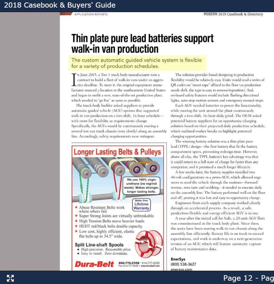 Winning a multi-AGV bid for a Tier 1 truck body manufacturer is one of many steps toward creating an efficient, safe and workable assembly line. The batteries Handling Specialty chose for this project, and the partnership between Handling and EnerSys sparked an article in Modern Materials Handling. Read it here.