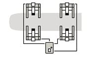 SERIAL – Capable of controlling up to 64 columns. The most complete and advanced, designed for maximum flexibility is able to expand the lifting set with no modification required. It’s loop connection system decreses the total lenght of the cables necessary and limits the crossing of the cables over the rail to only two.